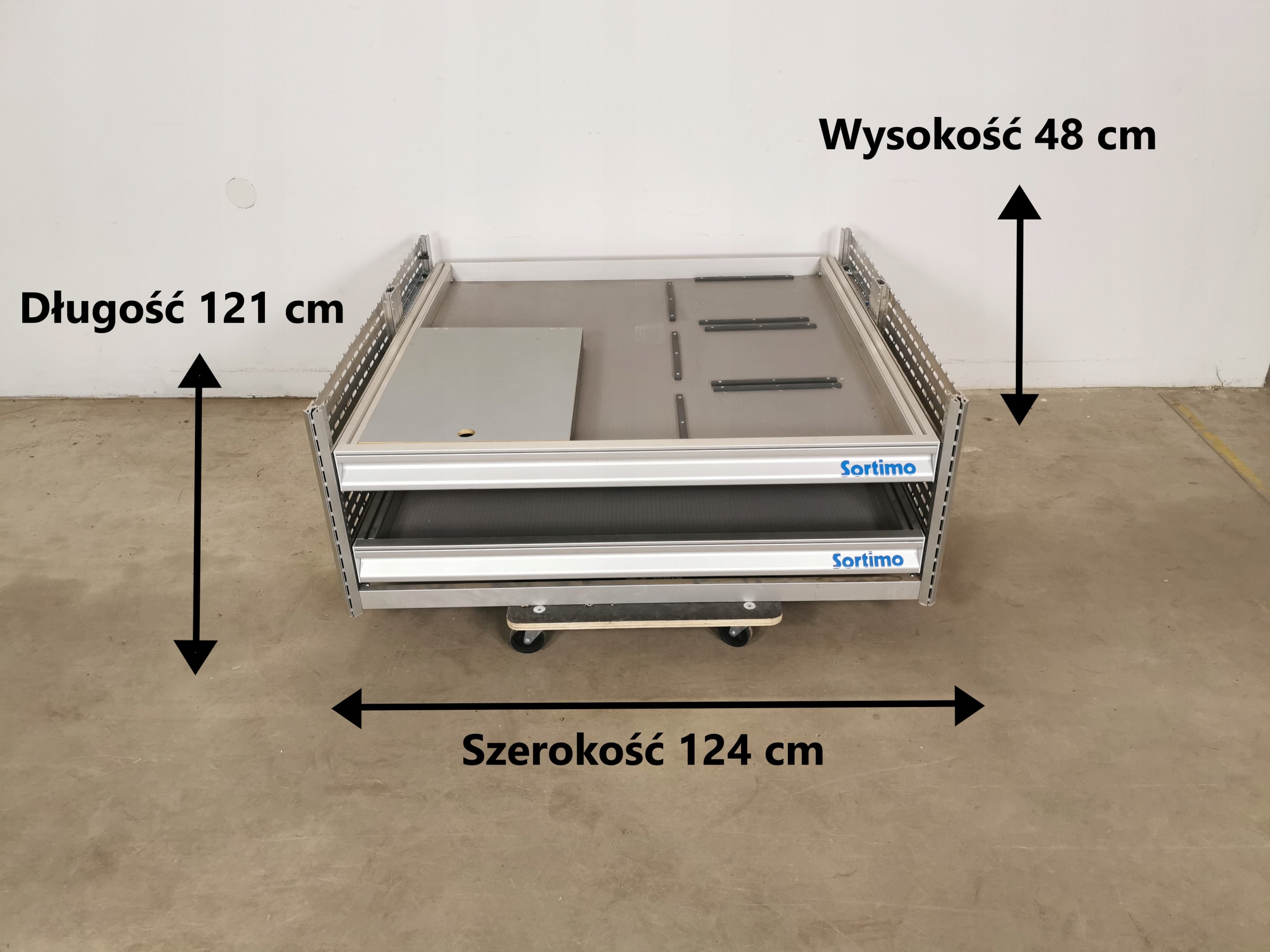 Zabudowa serwisowa warsztatowa regał samochodowy serwisowy PODWÓJNA PLATFORMA SORTIMOZamykana szafka z blatemW bardzo dobrym stanie, w pełni sprawne