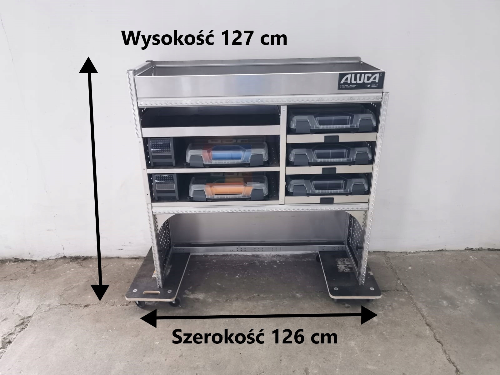 Regał samochodowy serwisowy zabudowa serwisowa warsztatowa KUWETY WALIZKI ALUCA5 WALIZEK !