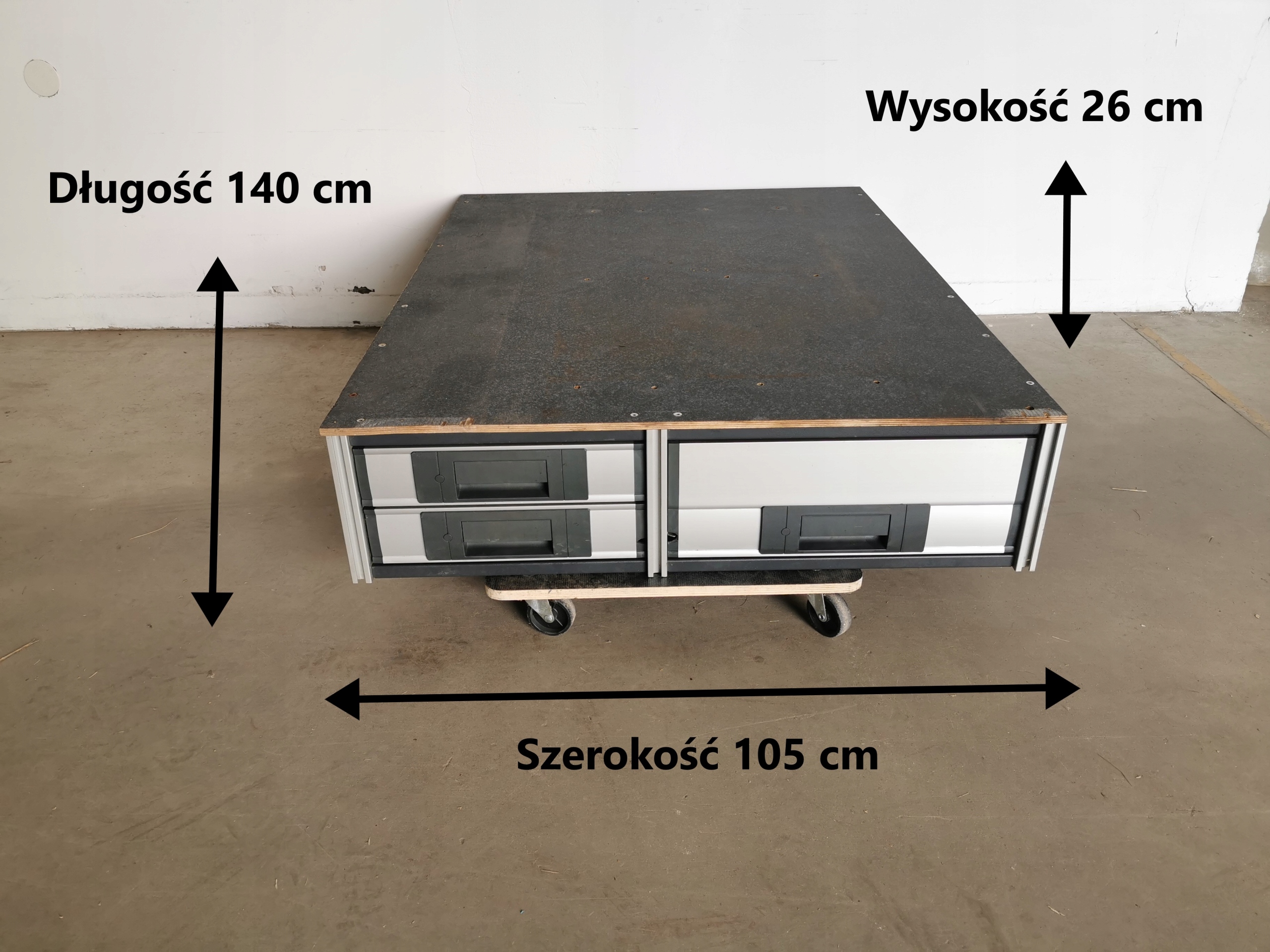 Wysokość wewnętrzna lewych szuflad 7,5 cm
