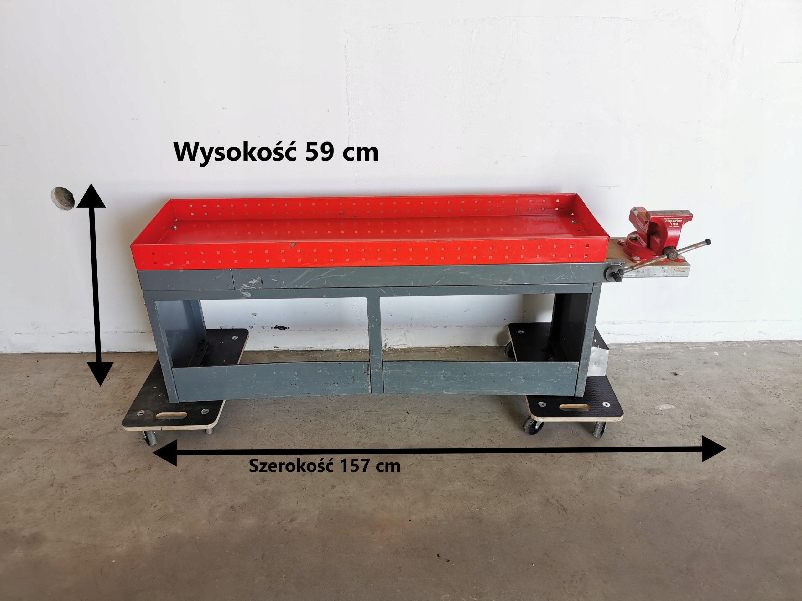 Szerokość regału bez podstawy imadła 139 cm