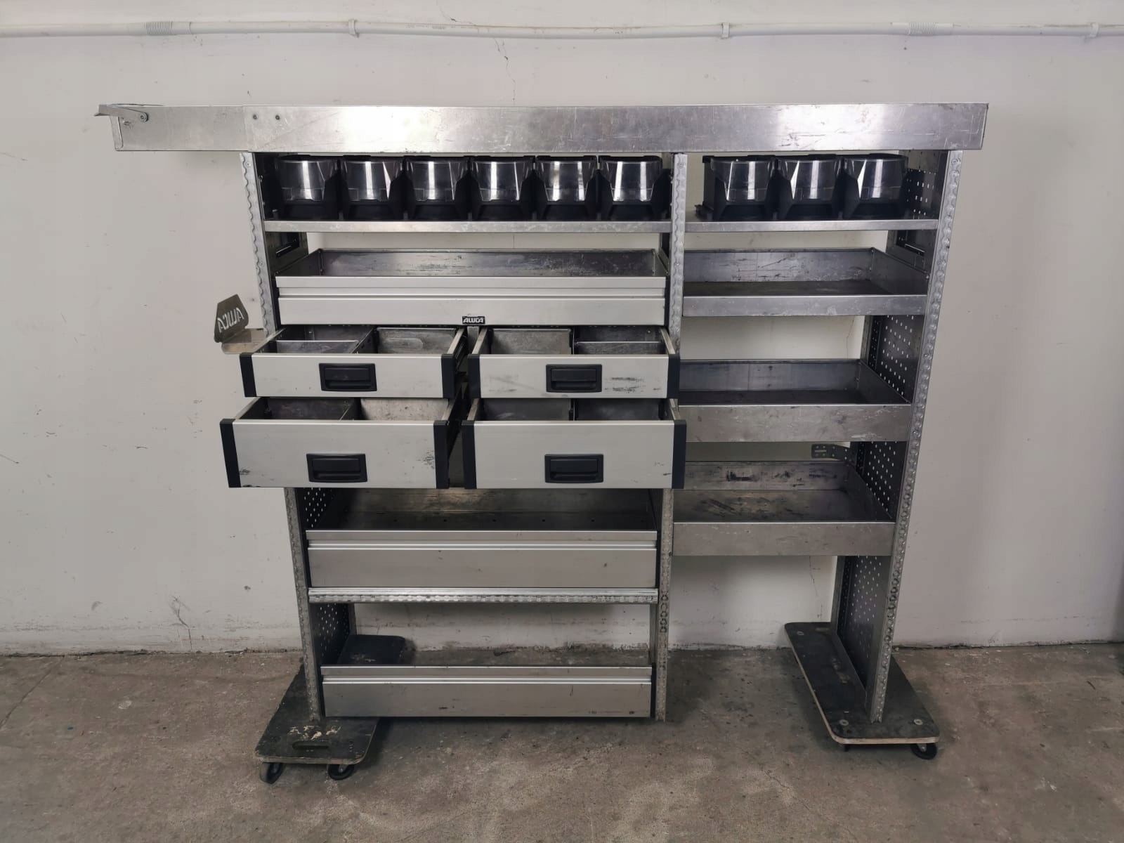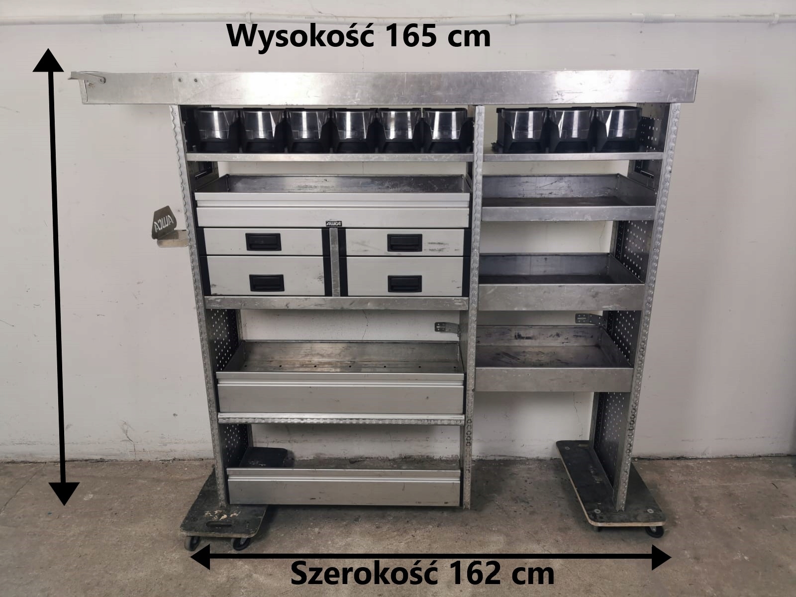 Zabudowa serwisowa warsztatowa regał samochodowy serwisowy SZUFLADY KUWETY BURTY PÓŁKI ALUCA