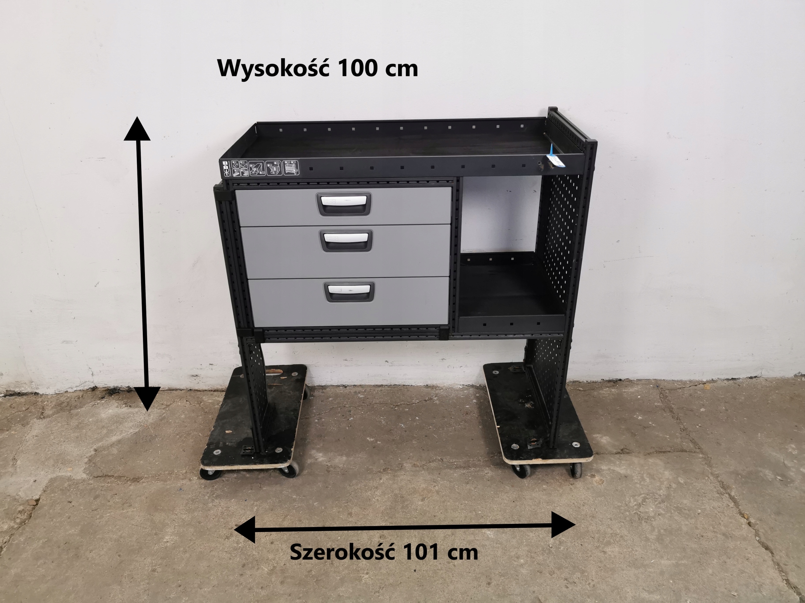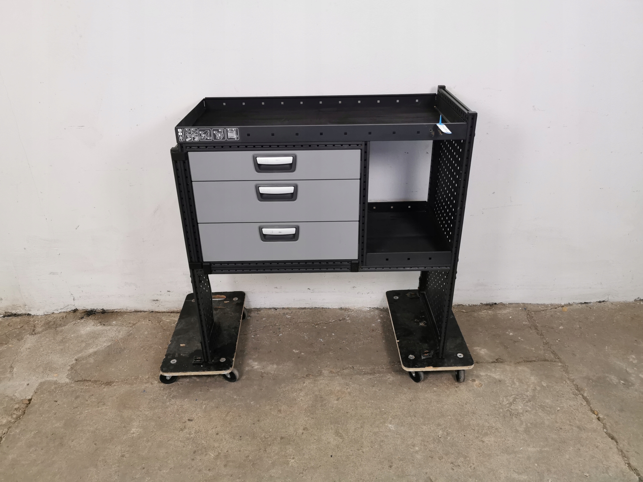 Zabudowa serwisowa warsztatowa regał samochodowy serwisowy MODUL-SYSTEMSZUFLADY PÓŁKI