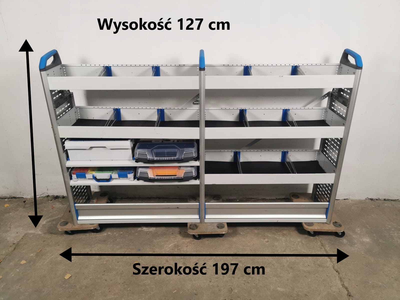 Zabudowa serwisowa warsztatowa regał samochodowy serwisowy WALIZKI PÓŁKI BURTY SORTIMO